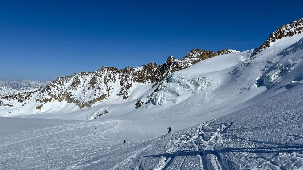 Zurück über die Aufstiegspur, auf das Mittebergjoch hoch und über den Pitztaler Gletscher ab.