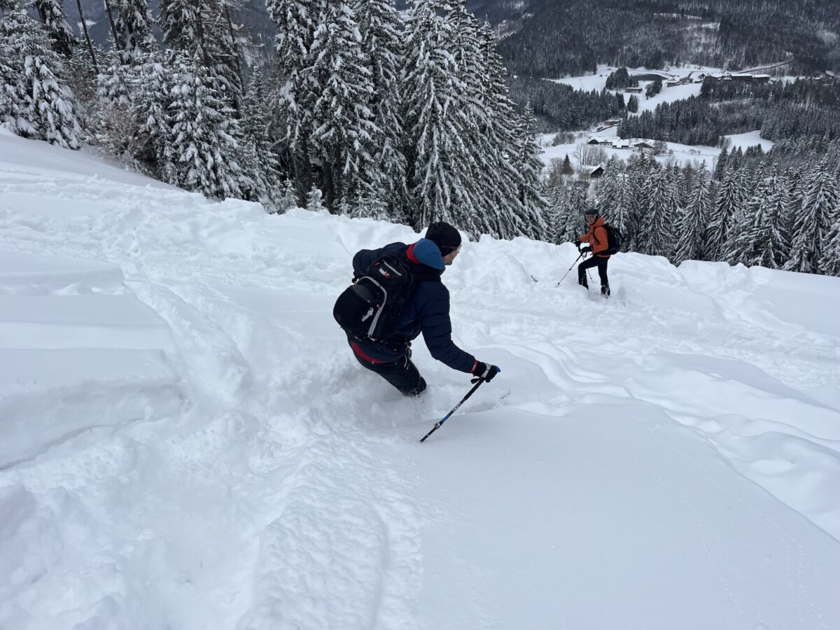 In Summe wurden 1.230 Höhenmeter auf einer Distanz von 17 km zurückgelegt. Danke an die motivierten Teilnehmer, die sich den traumhaften Tiefschnee nicht entgehen ließen!