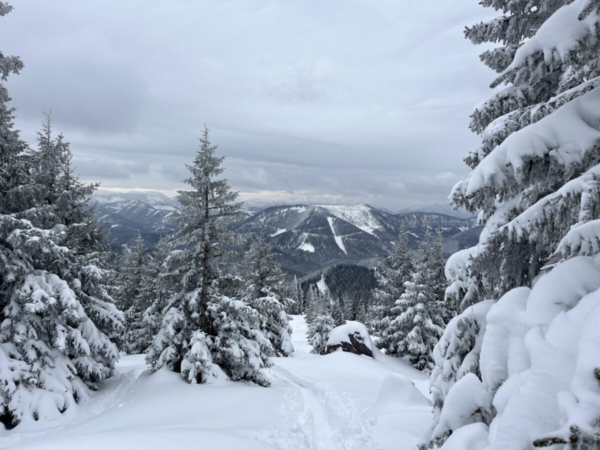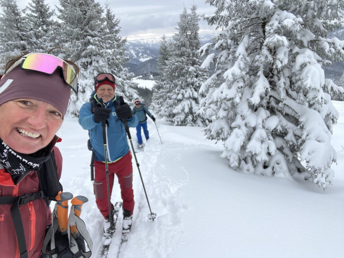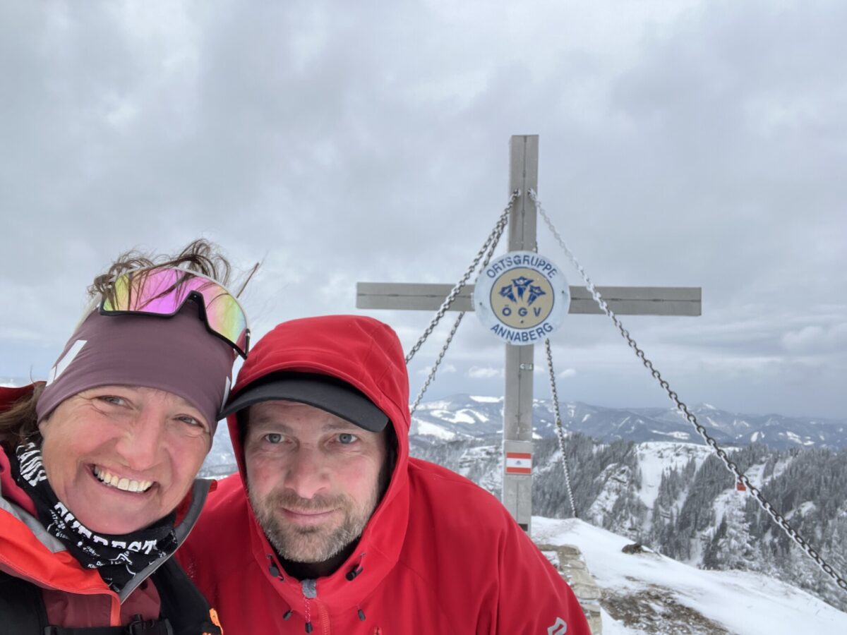 Der Hochschwab war geplant, auf Grund der schlechten Wetterprognose mit Sturmböen bis zu 100 km/h, kam es anders als geplant. Abfahrt etwas später und wir fahren mal soweit, bis der Schnee beginnt. Am Parkplatz Pfarrboden in Annaberg waren es schon feine 30cm Neuschnee und so war es auch – Pulverschnee bis über die Knie am Annaberg & Tirolerkogel.